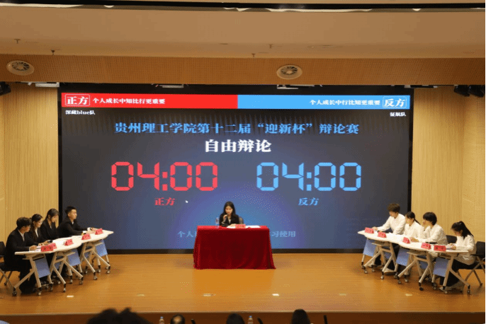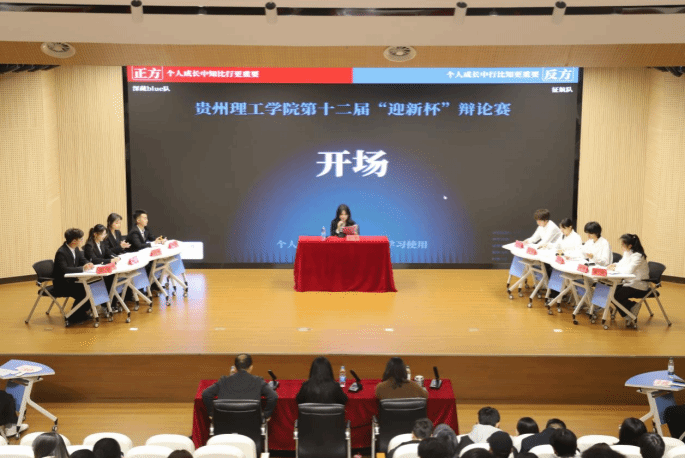 2025年11月13日,贵州理工学院第十二届“迎新杯”辩论赛决赛在蕴华楼四楼报告厅落下帷幕。本次赛事以“载知行万里,辩声满校园”为主题,历时半月吸引全校32支队伍参赛,经过初赛、复赛的激烈角逐,四支辩论劲旅脱颖而出闯入决赛。校团委精心组织,Git辩论协会倾力承办,特别邀请到贵州装备制造职业学院团委书记孙文、贵州团省委四级调研员文程、校团委组织部副部长吴雨担任专业评委。