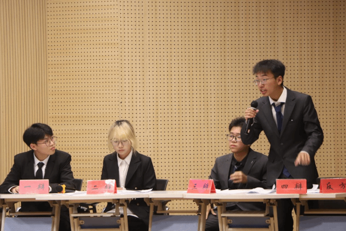 决赛现场座无虚席,气氛热烈非凡。首场辩论中,“深藏blue队”与“征航队”围绕“知与行何者更重”展开哲学思辨,从王阳明心学谈到马克思主义实践观,逻辑链条环环相扣;紧接着的“短视频利弊之争”更是火花四溅,“lu敬闻队”与“六六六队”立足传播学理论与社会现实,上演了一场精彩的价值博弈。辩手们引经据典、攻防有序,既有“知识内化方能指导实践”的深刻洞见,也有“算法困局消解人文关怀”的现实批判,赢得全场阵阵掌声。