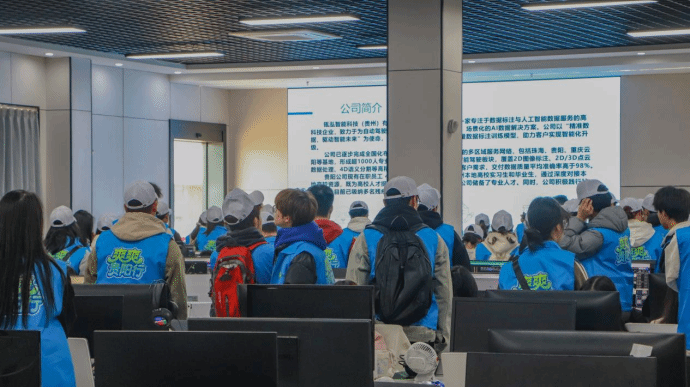 为精准对接高校毕业生就业需求,助力学子预见数字未来,2025年11月13日,由贵阳市委人才办、共青团贵阳市委主办的“就业引航”高校毕业生“爽爽贵阳行”第十一期活动成功举办。来自贵州理工学院青马班学员代表和学生干部代表100人前往瓴瓴泓智能科技(贵阳)有限公司与贵州云上鲲鹏科技有限公司,开展了一场聚焦“智能科技+大数据”的沉浸式企业研学。