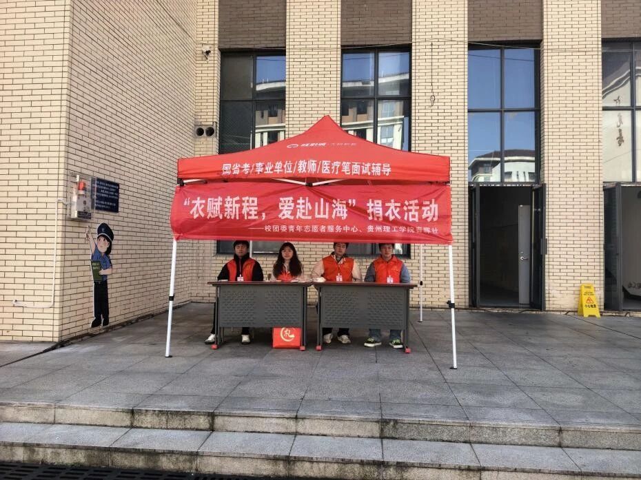 以青春之力传递公益温度,用爱心之举书写责任担当。为响应国家可持续发展战略的号召,引导青年学子在公益实践中厚植家国情怀,2025年10月19日-12月7日,校团委青年志愿者服务中心携手贵州理工学院春晖社,于薇苑与蓉苑门前开展了“衣赋新程,爱赴山海”主题爱心捐衣活动。