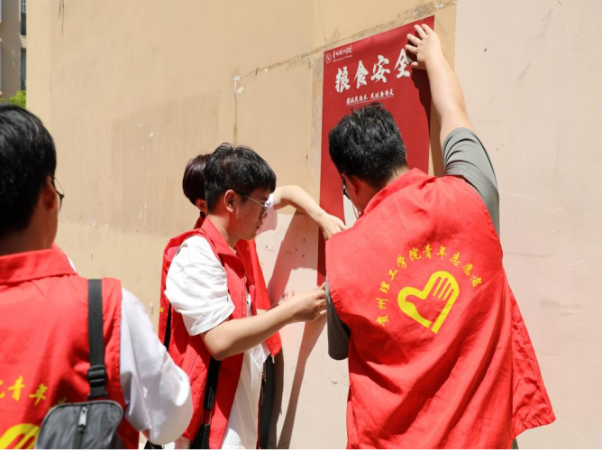 为加强对粮食安全战略、粮食安全形势、粮食安全知识、耕地保护政策等宣传宣讲,广泛凝聚粮食安全人人有责的共识,让爱惜粮食、节约食物在全社会中蔚然成风。2024年7月22日,贵州理工学院“三下乡”粮安阳航暑期社会实践团队赴开阳县紫兴街道东湖社区蒋家寨开展宣传国家粮食安全社会实践活动。开阳县紫兴街道东湖社区蒋家寨作为贵阳市最大的易地扶贫搬迁安置点,实践团成员针对其搬迁群众文化水平偏低、国家粮食安全意识不足等问题,展开一系列相关实践活动。