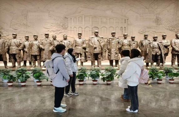 在秦丽丽老师的带领下,团队首站抵达遵义会议会址,并参观了遵义会议纪念馆。馆内陈列的珍贵照片与革命文物,都生动再现了红军长征的峥嵘岁月。秦老师重点讲述了“胜利树”的由来,队员们深受触动。随后,她结合历史文献与实物展品,对遵义会议的重大意义进行了细致讲解,让队员们对这段历史有了更深刻的理解。这次参观,让红色基因在队员们心底悄然扎根。