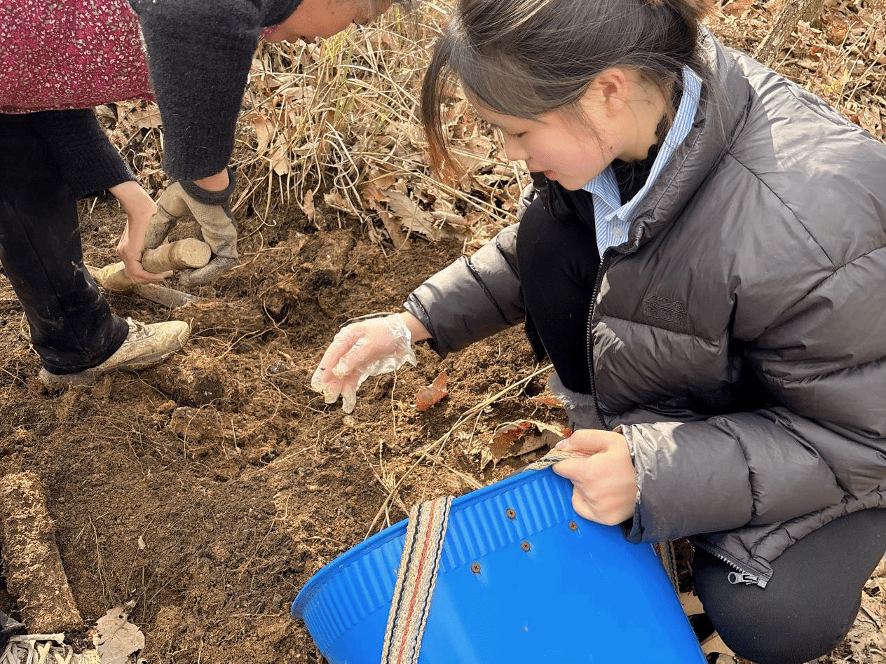 七天实践期间,该同学在当地农户与种植能手的悉心指导下,系统学习林下仿野生天麻种植技巧。从菌材挑选、菌种培育、林间挖坑、覆土养护到日常管理,她全程参与、亲手操作,熟练掌握了天麻种植的核心技术与实操要点。在实地体验中,她还认真观察天麻生长环境,记录生态种植模式,真切感受林下种植“不占耕地、以林养药、以药护林”的绿色发展理念,在其中深刻体会乡村产业发展的艰辛与希望。