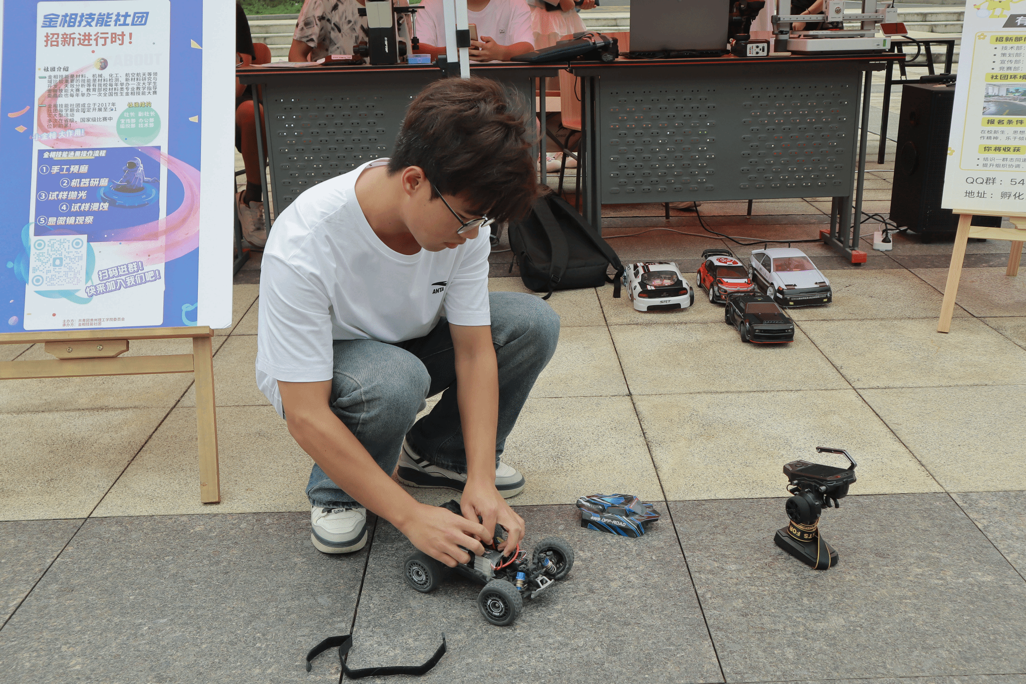 特色展示成焦点,多元魅力获青睐。多个社团的专属展示格外吸睛:马拉松社团展位前,金灿灿的奖牌整齐陈列,每块奖牌都镌刻着成员的赛事拼搏足迹,让新生直观感受运动热血;RC 引力社带来科技感十足的 RC 赛车,小巧赛车在成员操控下灵活穿梭,引得现场阵阵惊叹;金相技能社团则通过展板,清晰展示手工预磨、机器研磨等金相技能操作流程。此外,各社团招新附加专属QQ群与活动地址,方便新生咨询加入。