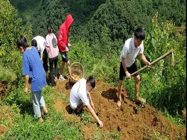 7月25日,建规志愿者在得知一位留守儿童既要忙于学业又要下地干活之后,主动向带队老师请缨,帮助村民下地挖土豆,进行义务劳动。