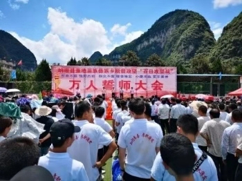 7月26日,贵州省自然资源厅、贵州理工学院联合组织“百名志愿服务送基层,走村入户携手助脱贫”志愿服务活动在纳雍县董地乡进入尾声。当地政府开展万人誓师大会,我校五十多名志愿者和董地乡村民参加会议。