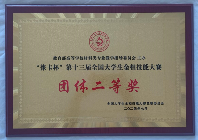 2024年7月25日至30日,由教育部高等学校材料类专业教学指导委员会主办,黄冈师范学院承办的“徕卡杯”第十三届全国大学生金相技能大赛决赛在湖北黄冈举行。贵州理工学院材料与能源工程学院凌敏和莫远科两位老师指导的代表队在大赛中取得优异成绩,其中,焊接221班的任顺超同学获一等奖,材料232班的肖茜娴和能器232班的丁卓玉两位同学均获二等奖,团体获二等奖。
