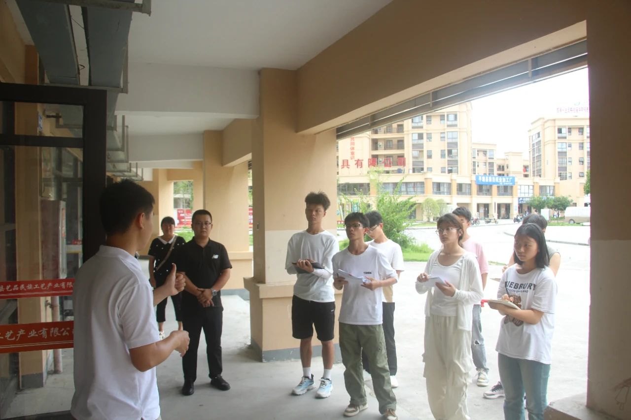7月10日,实践队员来到平塘县产业园区贵州新趋势服饰有限公司等企业进行走访调研,了解当地企业尤其是当地扶贫搬迁区企业及民族工艺相关企业助力乡村振兴的情况。在企业相关负责人的介绍下,实践队员对平塘县就业帮扶车间内部分企业的生产工艺、经营模式、对当地就业的促进作用等相关内容进行了了解。