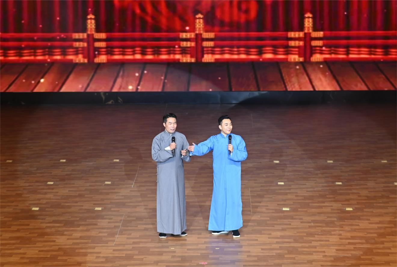 春黔社的老师们以诙谐幽默的相声表演赢得场上阵阵掌声,妙语连珠说起贵州理工学院过去十年取得的辉煌成就,让大家在欢声笑语中感悟理工的飞速发展。