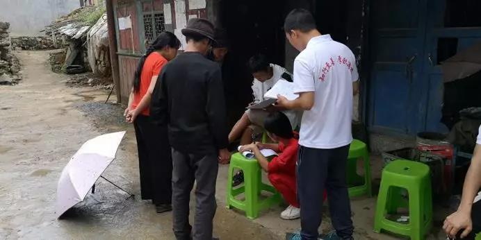 在支教队匆匆离开后,代申勇、王梓涛等9名志愿者分为了三组,分别跟随当地老师和前往了上寨组、麻窝族和张家寨组进行调研,他们步行穿过复杂的山间小路,踏过泥泞的羊肠小道,挨家挨户的做调研,做宣传。期间,有的同学被荨麻蜇伤,有的同学崴了脚,所有同学的鞋子和裤脚都沾满了泥,走家串户的路上也遍布青苔,稍有不慎就会滑下山坡,外省同学还和本地村民有着沟通问题……但是,土木分队的志愿者们没有怨言,道路越险阻,他们就越是迎难而上。他们在助力扶贫的路上不仅帮助了当地的村民,同样也磨炼了自己的意志,将土木人不怕苦不怕累的精神淋漓尽致的洒在了这片大山里。