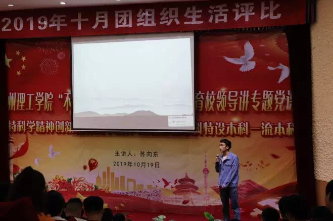 光辉的十月美丽如诗,光辉的十月硕果喜人。为庆祝中华人民共和国成立70周年,10月1日共青团贵州理工学院委员会组织各学院团总支开展“不忘初心、牢记使命—我和我的祖国”主题团日活动,10月18日分别在贵安校区开物楼1109教室和蔡家关校区逸夫小报告厅举行10月团组织生活评比,共有16个优秀团支部参加。