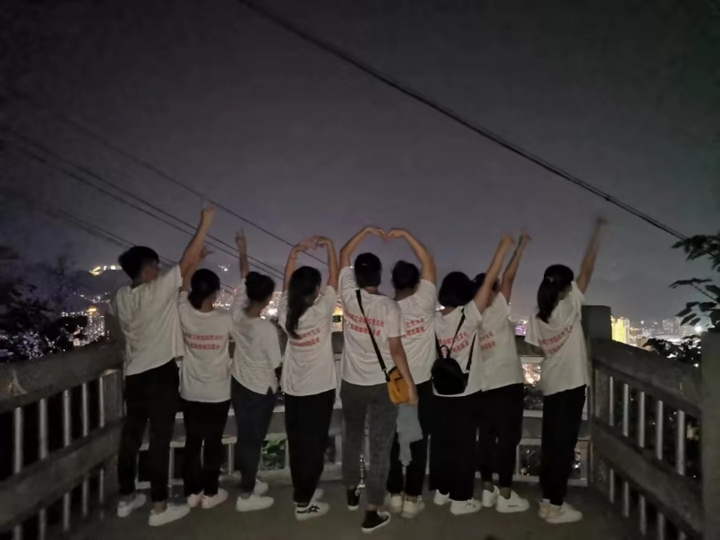 顶着高温酷暑完成一天的实践,同学们已累得汗流浃背,但大家不仅没有露出疲态,反而愈发活力四射。晚饭后稍作休整,大家决定登上铜仁市内著名的文笔峰,在山顶举行当天的实践小结。当大家互相鼓励,团结一心,一步一个脚印登上山顶的时候,那种战胜困难后顶天立地的感觉真的令人无比爽快!在山顶,有铜仁美丽的夜景为伴,有山上的虫鸣相和,与亲密无间的伙伴和队友一起,畅所欲言,尽情分享自己的所感所想,大方展示各自的才艺,这一次的“文笔峰上划小结”必将成为永久的美好回忆。