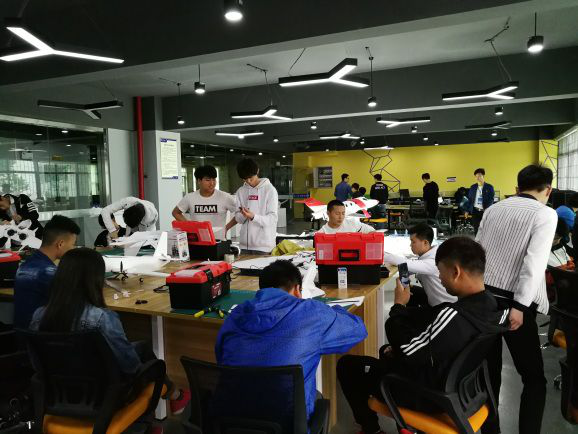 4月14日和4月15日上午,经过3月31日和4月1日两天航模制作的专业组参赛队,继续在无人机创新创业实验室进行航模制作。与此同时,业余组参赛队在第三实验楼604实验室开始航模制作。在制作赛场,参赛队员根据设计方案进行切割组装与调试,认真修整航模外形与结构,精心绘制表面涂装,圆满完成航模制作任务。