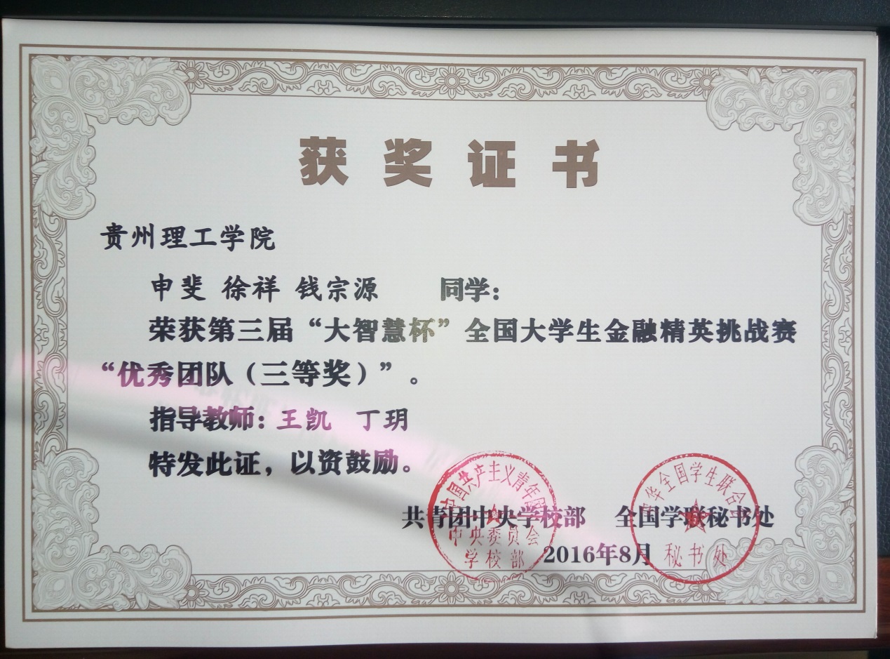 我校学子在第三届“大智慧杯”全国大学生金融精英挑战赛中喜获佳绩