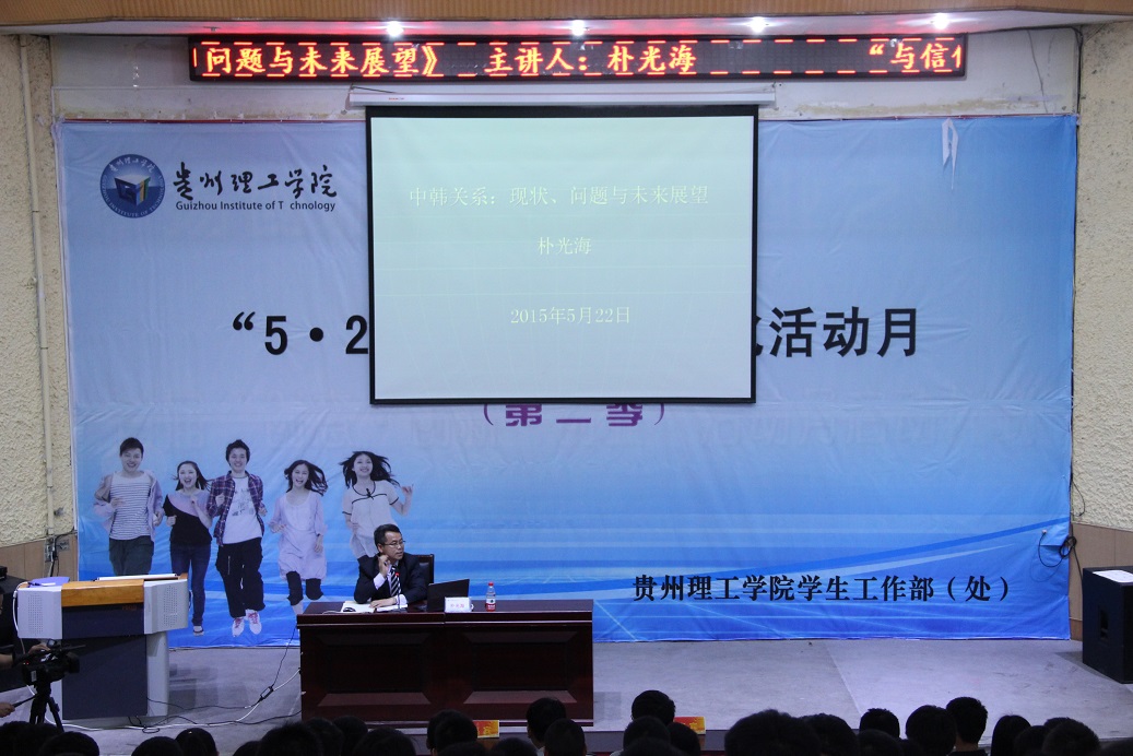 5月22日下午,“与信仰对话,光华讲堂”精品报告进校园活动在逸夫小报告厅举行。北京大学韩国学研究中心特聘研究员、中韩国策研究机构战略对话中方成员、中韩友好协会理事、中国社会科学院韩国研究中心研究员朴光海教授为我校300余名师生作题为“中韩关系:现状,问题与未来展望”的讲座。