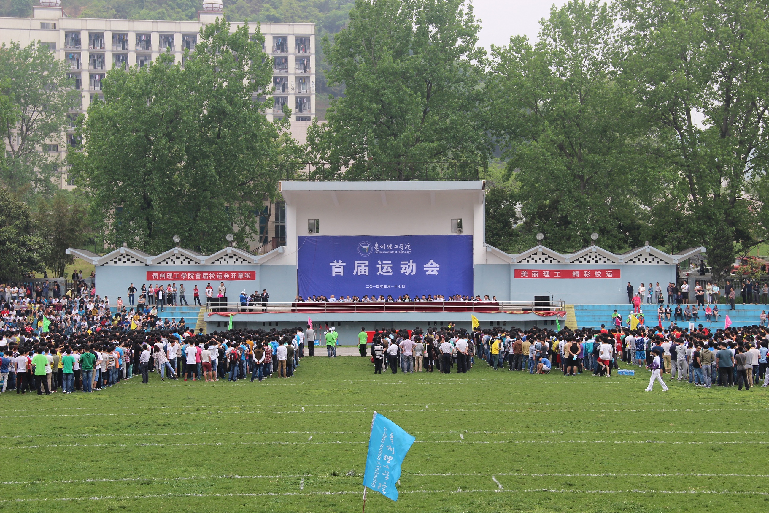 激情四射,绽放理工魅力;拼搏向上,尽显师生风采。为贯彻党的十八届三中全会关于“强化体育课和课外锻炼,促进青少年身心健康、体魄强健”的精神,落实团省委、教育厅、省体育局、省学联下发的《关于在全省高校开展大学生“走下网络、走出宿舍、走向操场”主题群众性课外体育锻炼活动的通知》要求,4月17日上午,在明媚的阳光下,将为期三天的贵州理工学院首届运动会在田径场隆重开幕。本次运动会的召开,既是落实团中央、团省委关于“三走”活动的精神,也是在贵州理工学院建校一周年之际全校师生振奋精神、凝聚力量,增强全校合力的一次聚会。