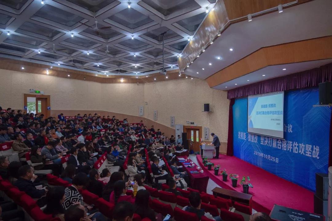 为在我校营造人人关心评估、人人参与评估的浓厚氛围,切实为顺利通过本科教学工作合格评估奠定坚实的思想基础和群众基础,10月25日,以“找差距、抓整改、坚决打赢合格评估攻坚战”为主题的贵州理工学院第四届教育教学工作会议在逸夫小报告厅召开。校领导曾羽、苏向东、梁杰、宋建波、胡兴灿、高勇出席会议,各教学(教辅)机构行政领导、教研室(实验室)负责人、教学科研科负责人,各职能部门负责人,高级职称教师代表,教务处及教学质量评估监控中心(含评建办)全体工作人员参加会议。会议由副院长梁杰主持。 校党委书记曾羽在讲话中强调,迎评工作进入最后一个月倒计时,希望大家坚定信心,针对存在的问题和不足,狠抓落实,立行立改,以评建工作为契机,促进学校教育教学工作再上新台阶。他对教育教学工作提出三点意见,一是坚持党对教育工作的全面领导,提升办人民满意的教育的思想自觉和行动自觉。二是坚持以落实立德树人为根本任务,提高人才培养的质量和水平。要加强思政课程和思政课教师队伍建设,继续深入推进习近平新时代中国特色社会主义思想进教材进课堂进头脑。三是坚持以高质量发展为根本要求,坚决打赢合格评估攻坚战。