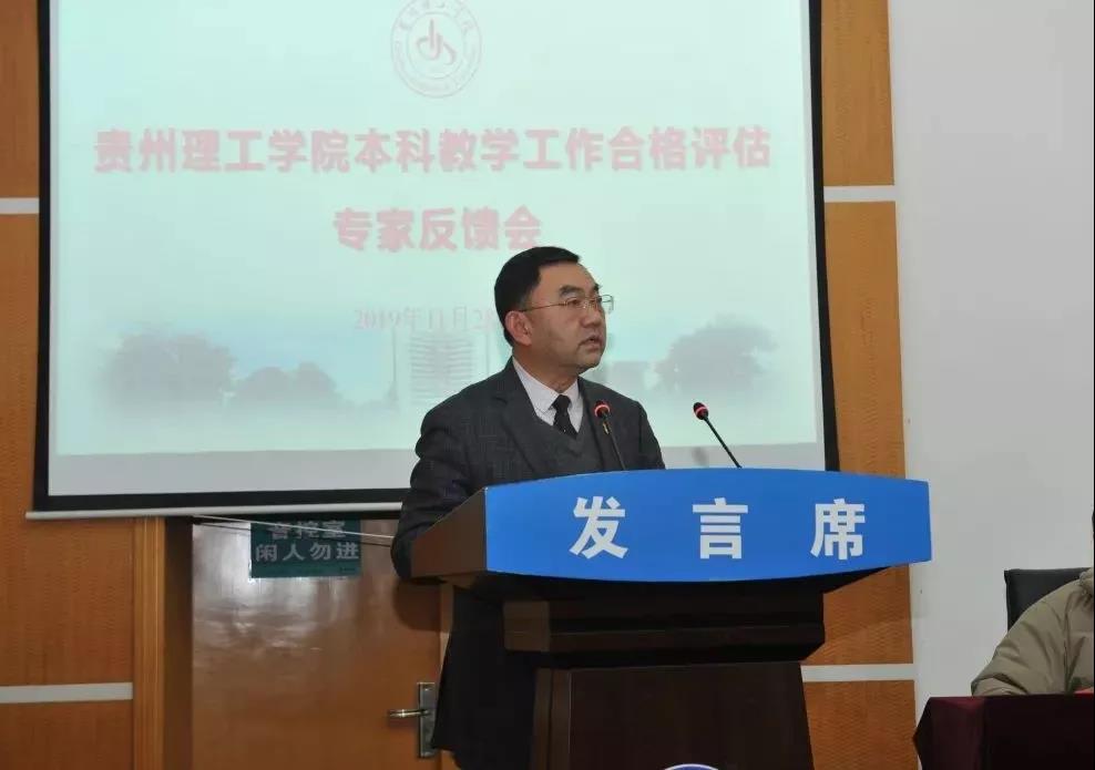 沈斐敏教授代表专家组介绍了评估工作开展的具体情况,并表达了专家组对学校的总体印象,从六个方面肯定了学校取得的办学成绩。一是办学发展思路清晰,办学定位准确;二是教学基本设施建设力度大,以评促建效果明显;三是教学中心地位牢固,高度重视专业师资队伍建设;四是加强课程体系建设,教学改革成效显著;五是加强专业内涵建设,提高人才培养质量;六是加强创新创业教育,强化学生创新创业的指导和服务。专家们一致认为,贵州理工学院正处在一个加快发展的时期,是一所充满活力、大有可为的学校,相信通过本次评估,在贵州省委省政府的支持下,学校发展一定可以再上一个新的台阶。同时希望学校按照办学定位,科学发展,办出特色,为地方经济和社会发展作出更大的贡献。