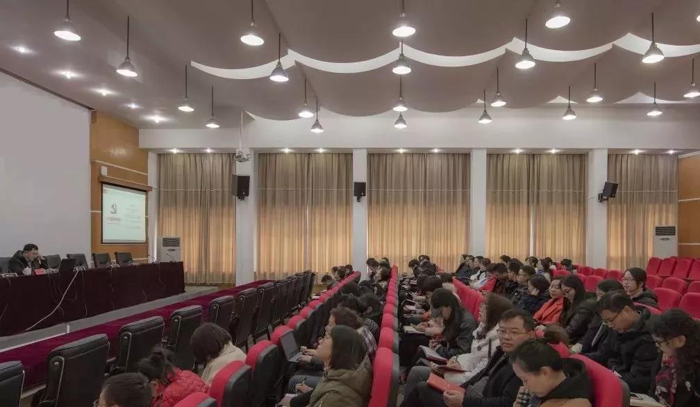 12月3日下午,党委书记曾羽在喀斯特报告厅为全校机关干部职工宣讲党的十九届四中全会精神。