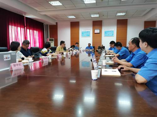 在贵州钢绳股份有限公司,调研组在总经理梁鹏、副总经理贺孝宇陪同下,参观了钢绳生产车间,了解了生产线相关技术难题,就相关技术难题进行了记录和探讨并深入交流,达成了初步合作意向。