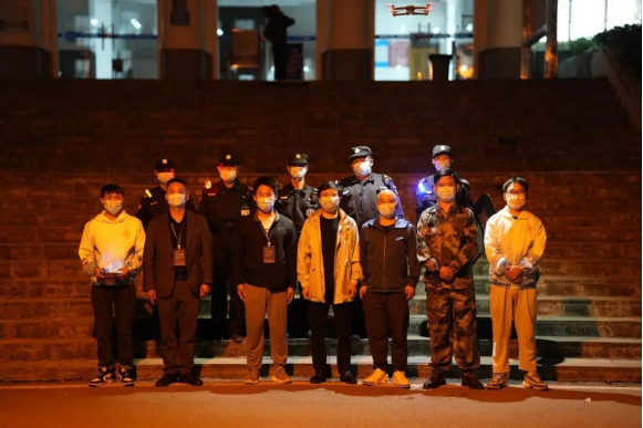 “9号宿舍区域情况是否正常,请报告”,“报告,9号宿舍区域正常”“各位同学大家好,为了您和他人的安全,请严格遵守校园疫情防控规定,禁止翻越围墙、私取快递外卖、与校外人员接触,谢谢大家的配合”,这是“监控巡逻无人机”机组自学校封闭管理以来每天的工作常态。为了严防死守做好疫情防控工作,上宇无人机科创团队全力配合学校保卫处,构建“空+地”“日+夜”“机巡+车巡+人巡”的全天候全时段立体校园防控新体系。每一架次的巡逻,每一分钟的防疫安全隐患排查,日日夜夜校园上空螺旋桨转动的声音,都彰显着上宇无人机科创团队青年学生们无尽的力量,都充满了学生党员、团员们对学校的爱。