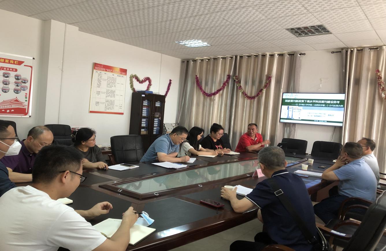 6月9日上午,《中南大学学报(自然科学版)》编辑部主任陈灿华编审一行三人应邀来我校学报编辑部开展业务交流座谈。座谈会由我校学报编辑部刘云川主任主持,我校机械工程学院周知进院长及学报编辑部全体编辑参加了此次座谈。