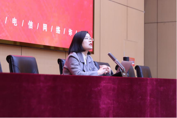 赵室丽律师从网络诈骗的定义、目前的现状、网络诈骗的严重危害及影响、如何辨别及防范等方面进行讲授,让师生对网络诈骗的基本手法、规律有了更进一步的认识;通过身边真实案例、鲜活的案例让大家真正的了解网络诈骗就在身边,不仅要对王洛诈骗进行识别及预防,还要避免成为诈骗分子的帮凶,在预防自己不被骗的同时,也警醒不要参与网络诈骗。