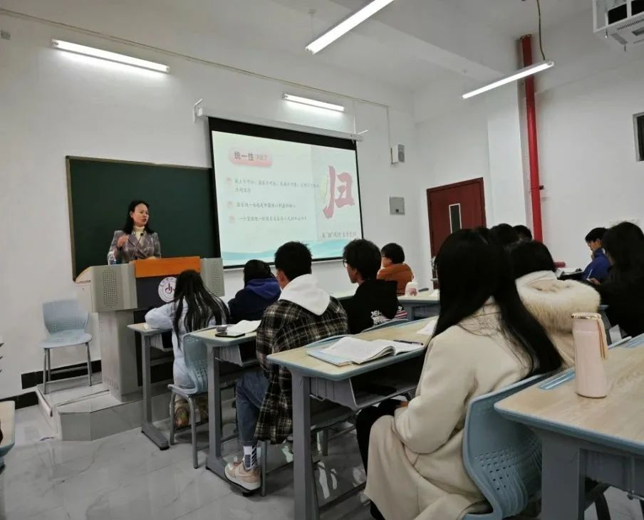 (马克思主义学院 徐焱 李智玲 黄政 朱国飞 代海艳 郑玉娇 聂祥乙 文/图)为深入学习宣传贯彻习近平新时代中国特色社会主义思想和党的二十大精神,不断推动党的创新理论进教材进课堂进学生头脑,根据学校“形势与政策”课程教学安排,近期,全体校领导走进思政课堂,面向不同专业的学生开展专题授课。