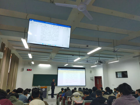 11月30日,副校长胡兴灿“以新安全格局保障新发展格局”为主题给自动化223班讲授“形势与政策”课。国是千万家,有国才有家。国家安全是安邦定国的重要基石,强调坚持总体国家安全观,为全面推进中华民族伟大复兴作出新贡献。引导同学认识国家粮食安全的重要意义,号召青年学子节约粮食,避免舌尖上的浪费。