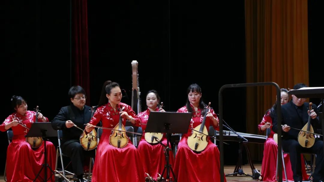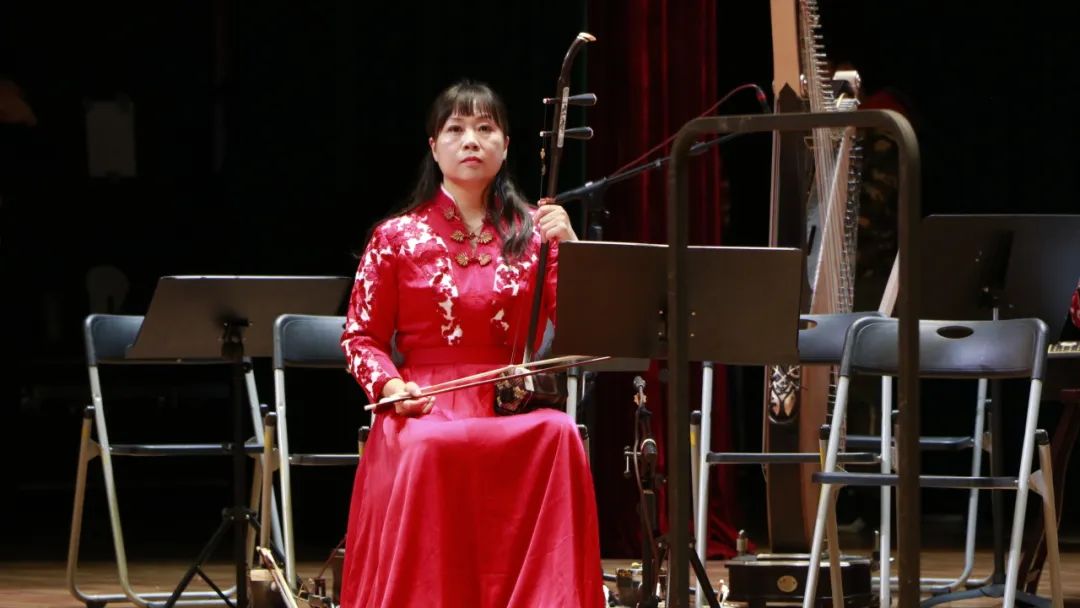 《凤凰于飞》前奏响起,琴声悠扬、笛韵雅致,缠绵婉转的曲调萦绕在听众们心间,悠扬的旋律带着大家徜徉在民乐艺术的浩瀚海洋中。