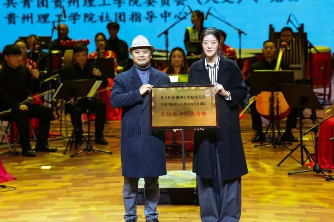 活动现场,共青团贵州理工学院委员会与贵州省民族乐团、贵州省花灯剧院举行了授牌仪式,开展全方位合作,共建艺术实践基地。