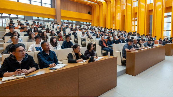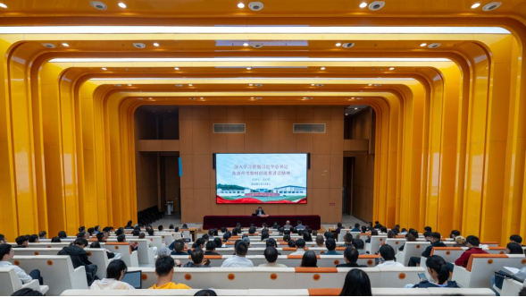 2025年5月15日下午,校党委书记苏向东在图书馆一楼报告厅,宣讲习近平总书记在贵州考察时的重要讲话精神。