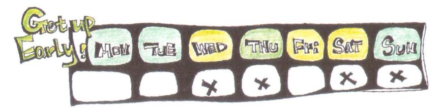 可能开始时,你每周只能打卡一次,甚至一次都没打。但是别着急,也别对自己失望,只要第二周继续来,这样逐渐你就会发现,√越来越多,你也会越来越自信。