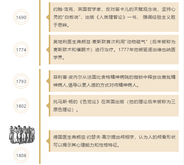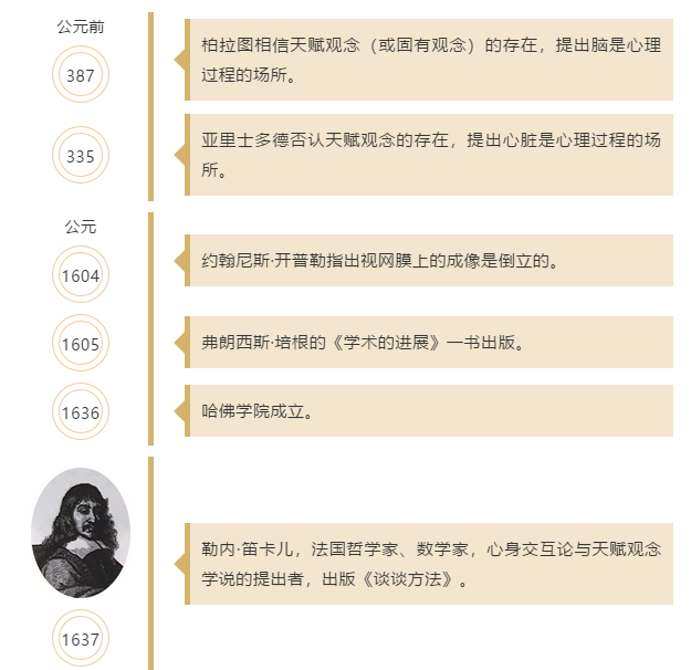 人始为人,就对自我和外部世界充满好奇。公元前300多年,古希腊博物学家和哲学家亚里士多德就对学习和记忆、动机和情绪以及知觉和人格进行了理论概括。而直到1879年,威廉·冯特在德国莱比锡大学建立第一个心理学实验室,心理科学才终于诞生。小编特意节选了迈尔斯《心理学导论》(商务印书馆,2019年3月)中的心理学编年史图,来跟大家一起追溯心理学漫长过去和短暂历史上的里程碑事件。
