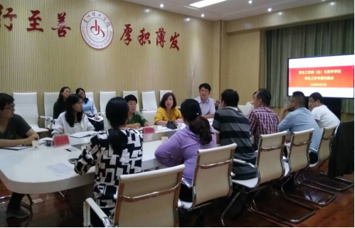 (本网讯 学工部汪树穹) 为进一步贯彻落实6月8日校党委中心组学习会议精神和分管校领导张波副书记的相关工作要求,6月12日晚七点半,在学工部会议室召开了“学生工作部(处)与资环学院学生工作专题沟通会”。学生工作部(处)班子成员、各科室(中心)负责人,资环学院分管学生工作的党总支副书记、学生科科长及全体专兼职辅导员参加了会议,会议由学工部徐元敏部长主持。