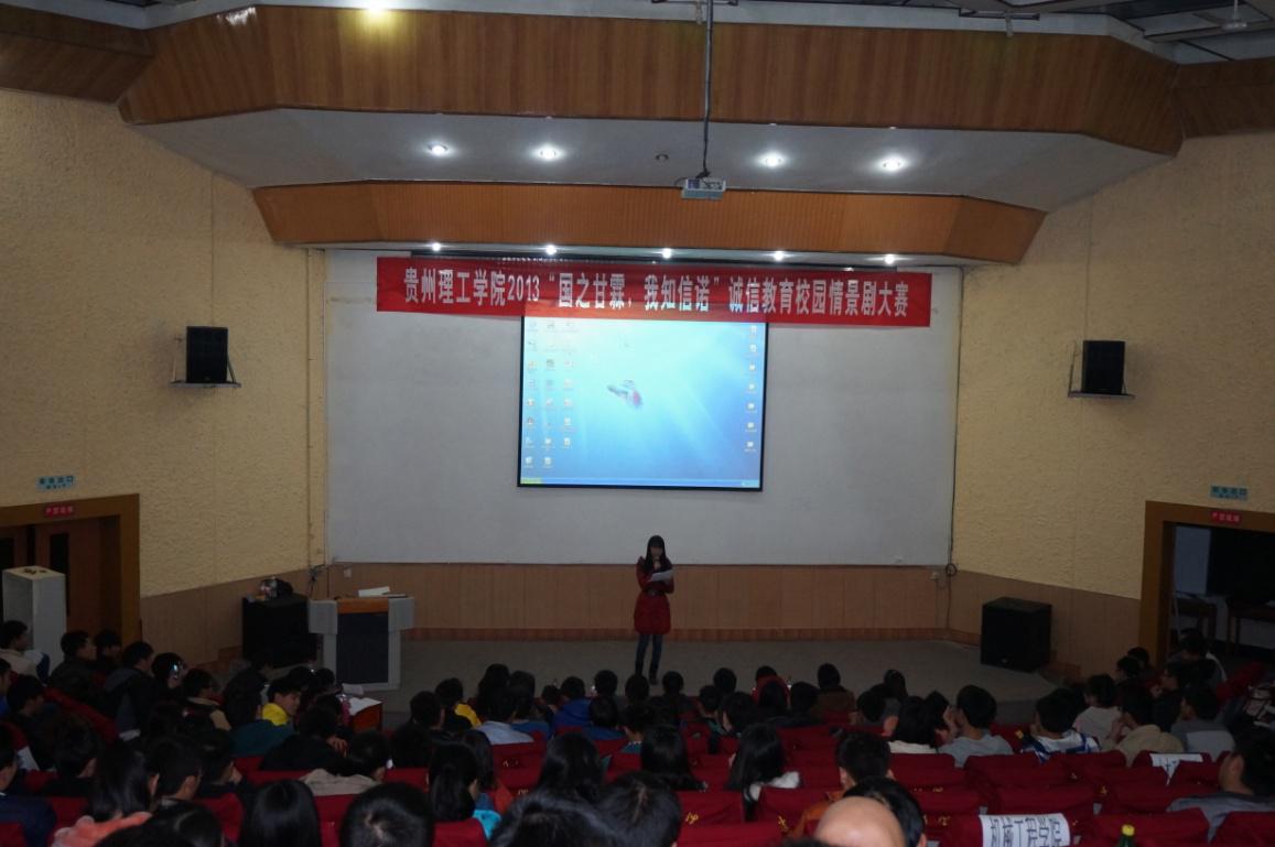 为深入贯彻《中共中央、国务院关于进一步加强和改进大学生思想政治教育的意见》和《省教育厅 国家开发银行贵州省分行关于举办2013年贵州省国家助学贷款诚信教育主题活动的通知》文件精神,共同推进诚信社会的建设,我校国家助学贷款“国之甘霖、我知信诺”诚信教育校园情景剧大赛于2013年12月8日晚在逸夫小报告厅19:00举行校级决赛。