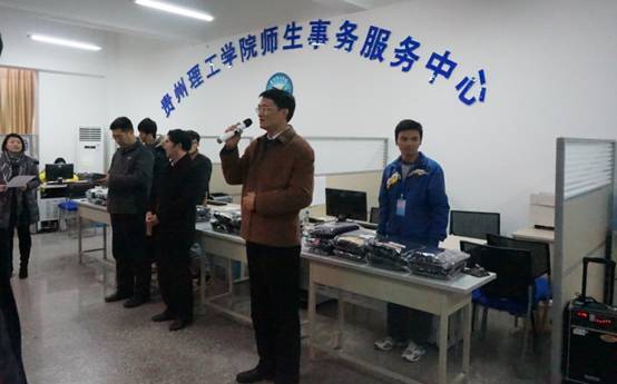 12月10日17时整,贵州理工学院2014年困难学生寒衣发放仪式在学工楼3楼师生事务服务中心正式举行。出席本次活动有党委书记曾羽、校长龙奋杰、党委副书记宋广强、学工部部长徐元敏、学生资助管理中心蒋文韬。