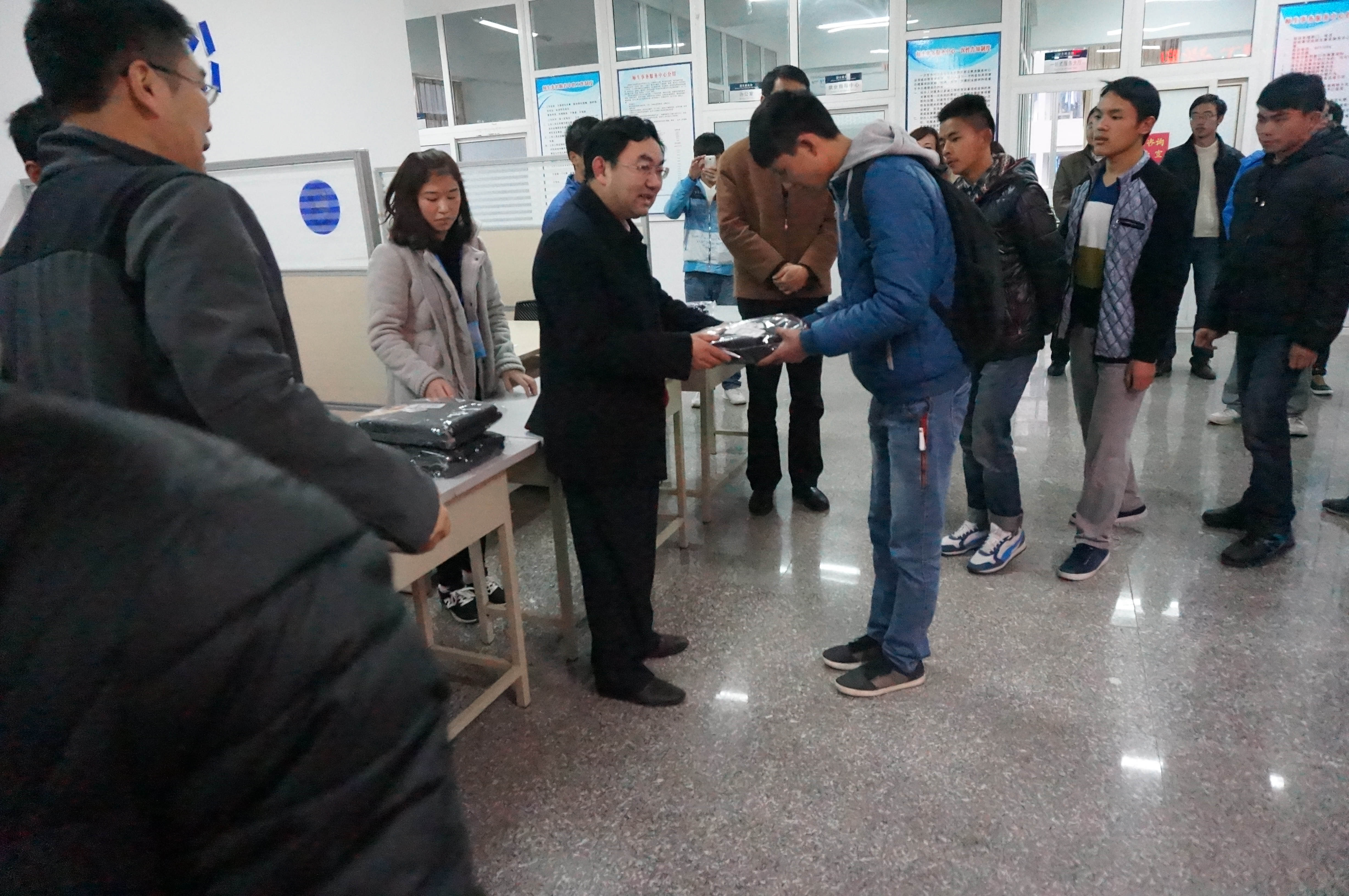 正直大雪时节,虽然窗外寒风凛冽,但校领导的关怀与鼓励给我们带来的春天般的温暖。活动现场,宋广强同志发表讲话:“天将降大任于斯人也,必先苦其心志,劳其筋骨,饿其体肤,空乏其身。要求同学们不能被暂时的困难击倒,要自立自强,实现自己的人生梦想。”随后,校领导给学生发放了保暖内衣。