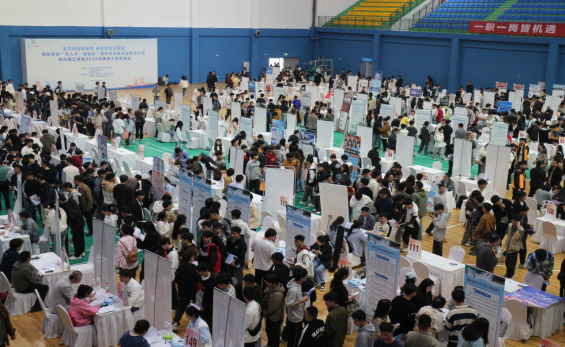 本网讯(学生就业指导服务中心杨和军)为扎实推进毕业生高质量充分就业,搭建用人单位与毕业生精准对接的高效平台,由贵州理工学院主办,中共贵阳市委宣传部、贵州理工学院学生就业指导服务中心、安顺市人力资源和社会保障局、贵阳双龙航空港经济区住房和城乡建设局联合协办的“聚力拓岗优服务春季攻坚促就业——贵州理工学院2025年春季大型双选会”于4月10日成功举办。