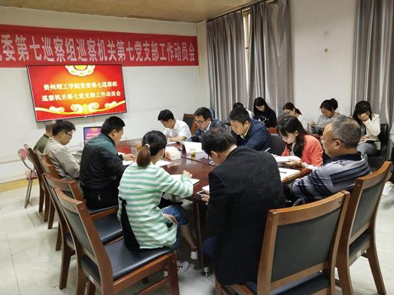 2019年4月10日上午10点30分,贵州理工学院党委第七巡察组巡察机关第七党支部工作动员会在信息网络中心会议室召开,支部书记钟晓锋同志主持会议。巡视组全体成员、机关第七支部及其组成部门处科级干部、机关第七支部全体党员,教师代表出席了会议。
