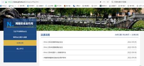 1、在贵州理工学院官网设置了网络安全宣传周专栏,推送网络安全知识和相关微视频,以深入贯彻习近平总书记关于网络强国的重要思想为重点,加强《网络安全法》宣传,普及师生的网络安全知识,提升网络安全意识和防护技能。
