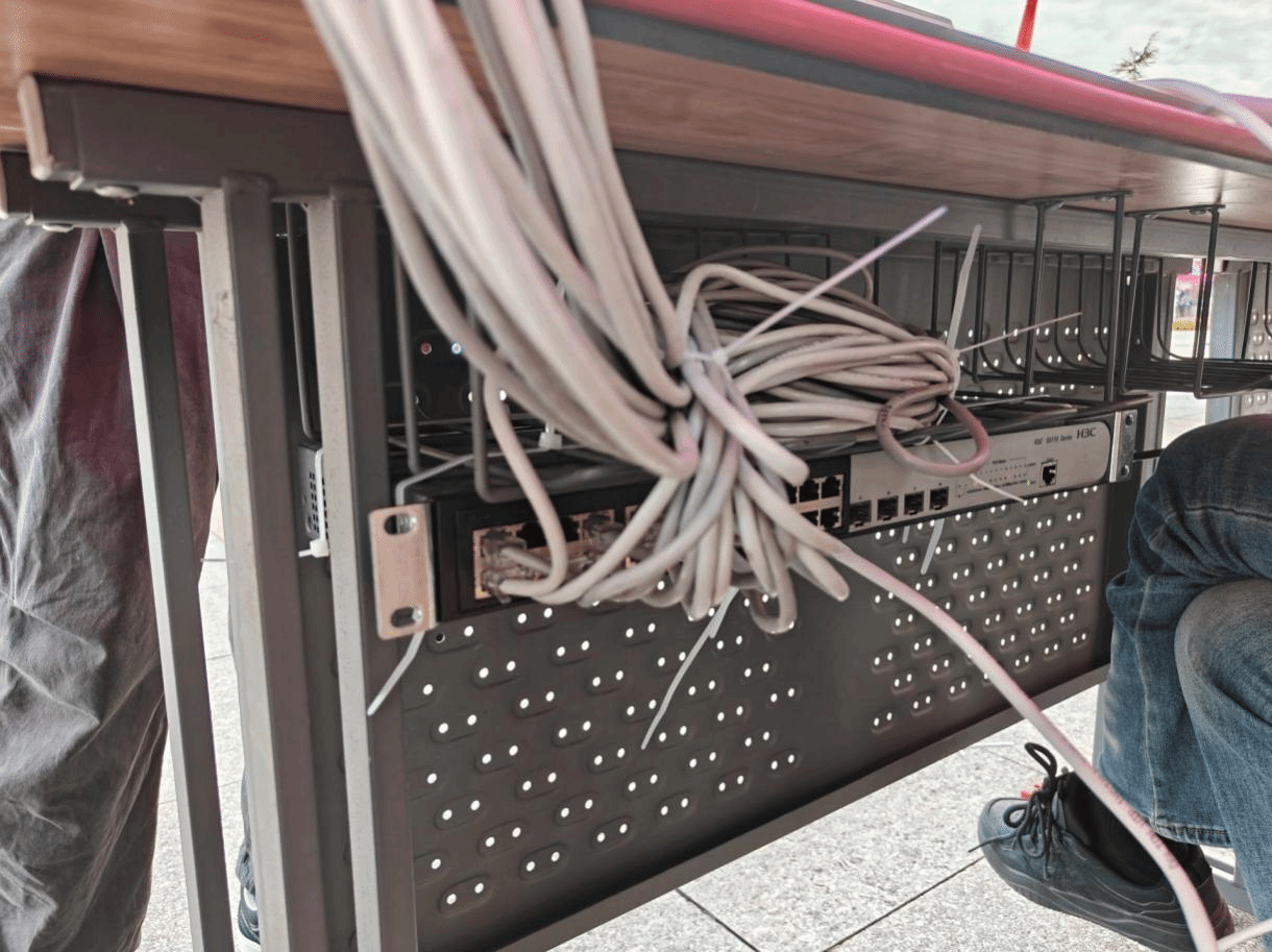 2025年8月27日,信息网络中心专业技术团队经过现场勘查迎新场地,定制了一套完备的网络规划方案,通过天工楼弱电井高空把主线引入到体育学院迎新点作为基础网络点,为迎新现场20多个迎新点布置临时上网信息点。截止8月28日完成了所有信息点的布置和测试,同时,配合8月29日正式迎新进行现场维护和答疑做好完全准备。