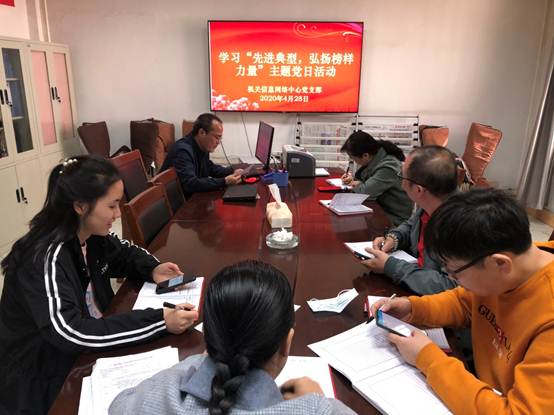 2020年4月28日,机关信息网络中心党支部在一楼会议室组织党员同志开展了“学习先进典型 弘扬榜样力量”主题党日活动专题学习会,会议由支部书记高应波同志主持。