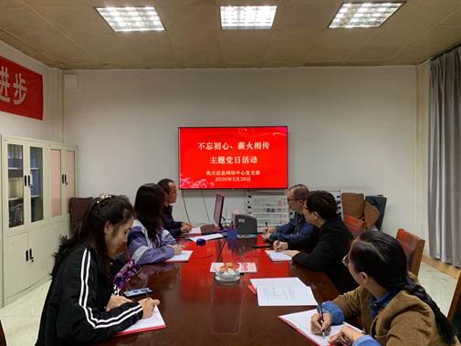 2020年5月28日,机关信息网络中心党支部在一楼会议室组织党员同志开展了“不忘初心,薪火相传”主题党日活动专题学习会,会议由支部书记高应波同志主持。