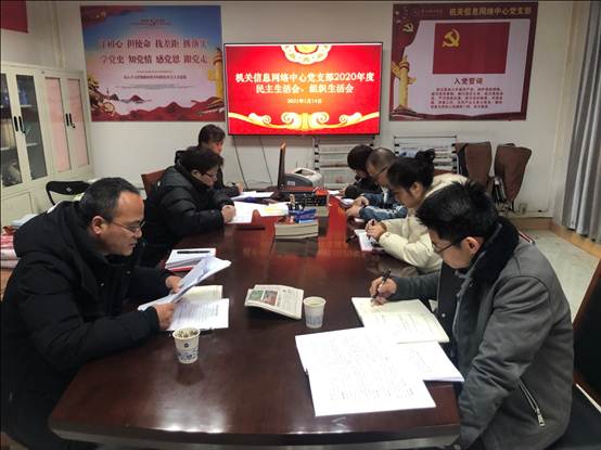(本网讯 信息网络中心莫紫娟)2021年1月14日上午9:30,机关信息网络中心党支部在一楼会议室,组织召开2020年度民主生活会暨组织生活会。会议由支部书记高应波主持, 代表学校到会进行督导。