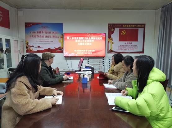 本网讯(信息网络中心 莫紫娟)2021年11月22日,机关信息网络中心党支部在中心一楼会议室组织党员同志开展了“深入学习贯彻第27次全国高校党的建设工作会议精神”主题党日活动。高应波书记在会上传达机关党委11月主题党日活动相关文件精神,领学《第27次全国高校党的建设工作会议综合简报》。