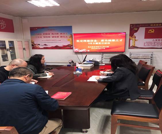 本网讯 莫紫娟)2022年3月17日机关信息网络中心党支部在一楼会议室组织全体党员召开“坚定理想信念、勇当栋梁之才”主题党日活动。