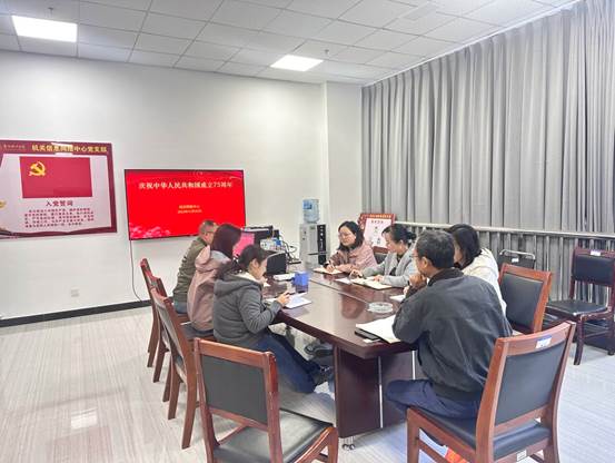 10月25日,机关信息网络中心党支部全体党员在二楼会议室开展“庆祝中华人民共和国成立75周年”主题党日活动。
