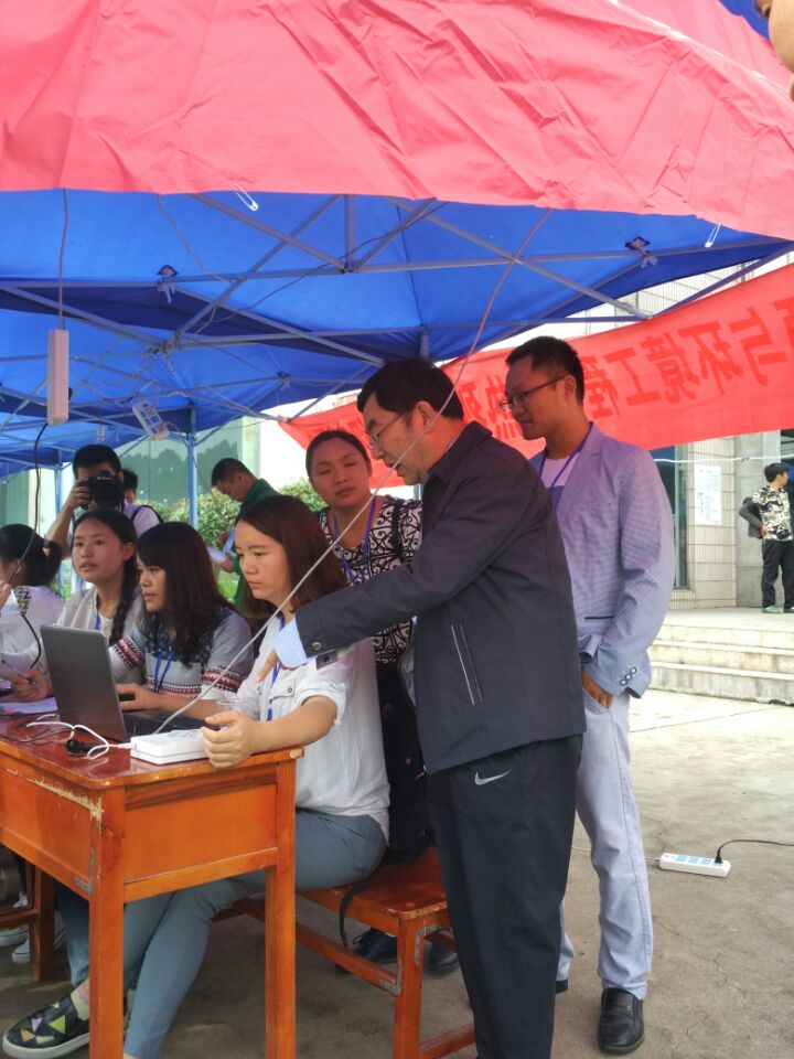 在迎新现场,贵州理工学院党委书记曾羽来到资源与环境工程学院迎新现具体了解学生的报到情况。学院党总支副书记吴维义在现场参与迎新工作,不时询问新生了解其具体情况。