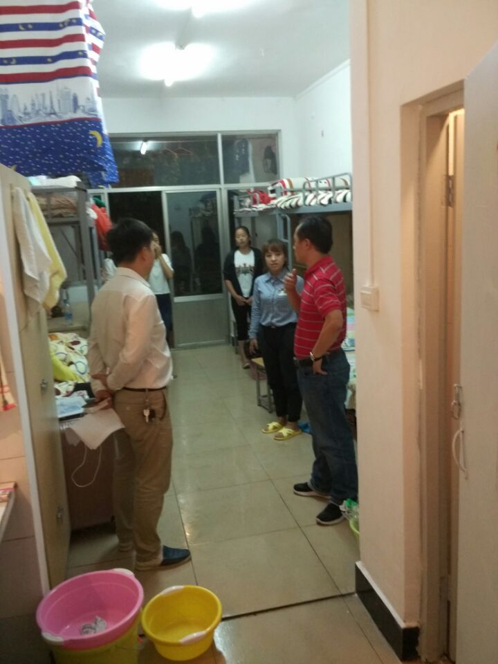 白天的迎新工作结束后,学院党总支副书记吴维义带领辅导员和班主任到新生寝室了解学生的住宿情况,并对新同学强调最近的近期的工作安排,提醒同学们注意安全。